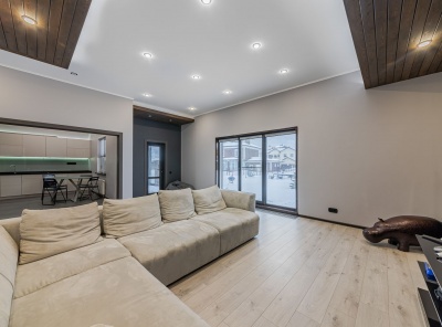 Продажа загородного дома площадью 250 кв.м. Новорижское шоссе, 23 км от МКАД. Коттеджный поселок Новорижский. Современный проект в стиле Хайтек построен в 2 этажа по индивидуальному проекту. Фасад — массив лиственницы. Внутренняя отделка помещений выполнена в современном стиле с использованием качественных материалов. Теплые полы уложены по всему первому этажу на втором этаже в с/у. Установлена система фильтрации воды - Аквафор Waterboss. Дом расположен на видовом участке 13.6 соток правильной формы в тихой части поселка.