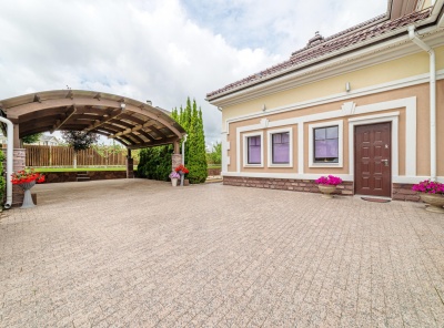 Продажа нового загородного дома площадью 450 кв.м. Новорижское шоссе, 23 км от МКАД. Коттеджный поселок Павловы озера. Дом построен из кирпича в классическом английском. Большие окна позволяют наполнять достаточным светом каждую комнату. Интерьер выполнен в спокойных светлых тонах с использованием натуральных материалов массива дерева и камня. В ванных комнатах использованы премиальные материалы и сантехника. На участке 9 соток выложен газон и высажены декоративные растения.