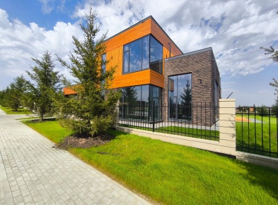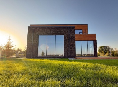 Продажа нового загородного дома площадью 217 кв.м. Новорижское шоссе, 23 км от МКАД. Коттеджный поселок Павловы озера. Фасад этого коттеджа раскрывается в утончённой гармонии - тёплые кирпичные оттенки соединены в изящную и глубокую палитру, а крупные панорамные окна создают ощущение лёгкости, словно стекло растёт из самого тела дома и мягко отражает небо и зелень. Центральная часть дома выделена сквозной стеклянной стеной, которая визуально втягивает в себя внутренний двор и соединяет фасады, разделяя публичные и приватные зоны.