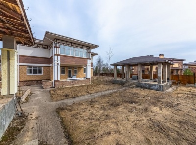 Продажа загородного дома общей площадью 450 кв.м. Новорижсое шоссе, 23 км от МКАД. Коттеджный поселок Мэдисон. Основной дом 380 кв.м., гостевой дом 70 кв.м. Выполнены черновые работы, стяжка, штукатурка, разведено электричество, залита лестница на второй этаж, установлен газовый котел, подключен газ. Деревянные стеклопакеты. Просторные комнаты и высокие потолки. Угловой участок 21,5 сотка расположен в центре поселка напротив парка.