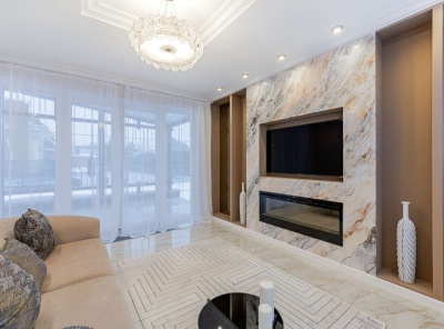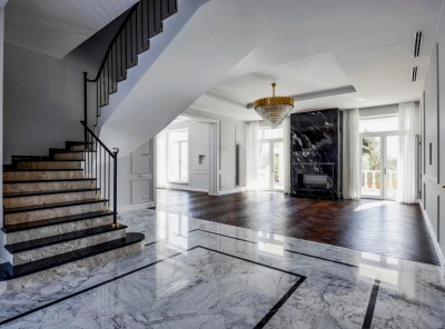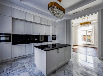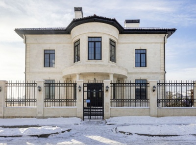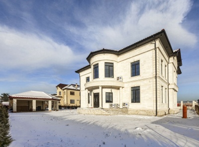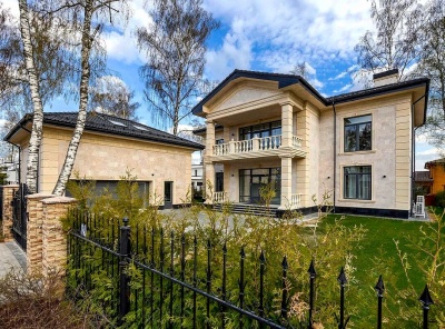 Продажа загородного дома площадью 900 кв.м. Новорижское шоссе, 23 км от МКАД. Коттеджный поселок Новорижский. Коттедж построен в 3 этажа из керамического кирпича. Фасад дома выполнен известной архитектурной компанией из натурального камня. Колонны, потолки также выполнены из натурального фасадного камня. Входная зона дома из природного гранита. Установлен забор и автоматические ворота. Выполнено фасадное освещение дома и забора. Крыша - натуральная черепица. Высота потолков 4 метра.