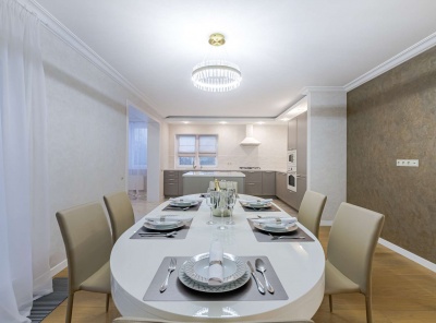 Продажа загородного дома площадью 350 кв.м. Коттеджный поселок Старый Свет. Новорижское шоссе, 27 км от МКАД. Дом построен в 2 этажа в современном стиле. Второй свет. Панорамные окна. Камин. На ухоженном участке 15 соток расположена детская площадка, баня из клееного бруса 279 м2, бассейн с подогревом, противотоком и подсветкой, зона барбекю. Высажены туи, гортензии, установлен автополив, освещение, дорожки.