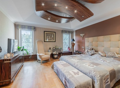 Продажа загородного дома площадью 400 кв.м. Коттеджный поселок Княжье Озеро. Новорижское шоссе 24 км от МКАД. Дом построен по проекту в 2 этажа. Фасад дома выполнен из искусственного камня. В интерьере дома использованы драгоценные породы древесины. Стены частично украшены авторской ручной росписью. На лесном участке 27 соток с ландшафтным дизайном расположен банный комплекс из бревна, большая теплица, пруд, беседка с барбекю, гараж на 2 м/м, парковка на 4 м/м. Въезд на участок возможен с двух улиц. Лучшее расположение в поселке.
