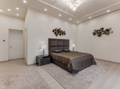 Продажа загородного дома общей площадью 450 кв.м. Коттеджный поселок Веледниково. Новорижское шоссе 16 км от МКАД. Коттедж построен в 2 этажа с использованием высококачественных материалов со всеми коммуникациями. Укомплектован всей необходимой мебелью и бытовой техникой. Готов к самому комфортному проживанию большой семьи.Планировка:1 этаж - прихожая, гардеробная, гостиная, кухня-столовая,спальня, с/у, котельная, терраса;2 этаж - холл, 2 спальни со своими с/у и гардеробными, с/у, 2 спальни.