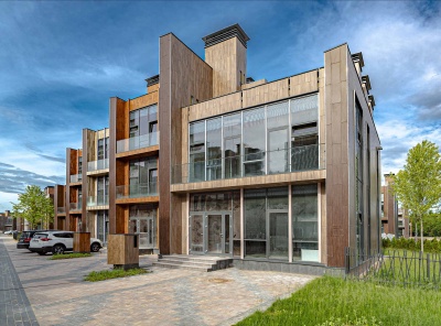 Продажа торцевого таунхауса площадью 169 кв.м. Новорижское шоссе, 23 км от МКАД. Коттеджный поселок Футуро Парк. Таунхаус построен в 2 этажа с возможностью выхода на эксплуатируемую кровлю. Участок 2,6 сотки засеянный газоном с автополивом. По периметру высажены туи.Вариант планировки:1 этаж — прихожая, гардеробная, кухня-столовая, гостиная с выходом на участок, с/у,2 этаж — 2 спальни, гардеробная с/у, кабинет, два балкона,Эксплуатируемая кровля-терраса со стеклянным ограждением, на которой можно организовать зону отдыха под открытым небом.