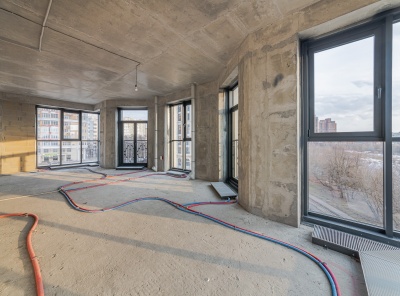 Продажа 1-комнатной квартиры площадью 45 кв.м. Метро Славянский бульвар 7 минут транспортом. Улица Нежинская, дом 5к2. ЖК SPIRES. Квартира предлагается без отделки, стены не возведены.