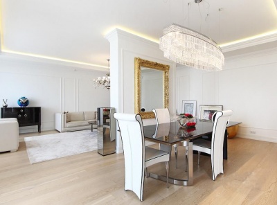 Продажа 3-комнатной квартиры площадью 161 кв.м. Метро Сокол, 5 минут пешком. Чапаевский переулок, дом 3. ЖК Триумф Палас. Новая, светлая, роскошная, квартира с отделкой в стиле современная классика от Fendi, выполненная из высококачественных экологичных материалов. Пол - массив дерева. Кухня - бытовая техника Miele, Gaggenau. Подогрев полов. Имеется свой балкон. Панорамные окна придают максимальное количество естественного света. Виды на всю Москву!Планировка: Холл, кухня-столовая-гостиная, 2 спальни, 2 с/у, гардеробная, балкон.