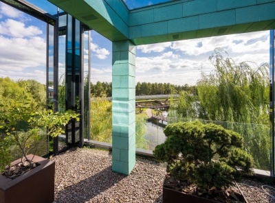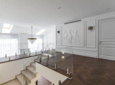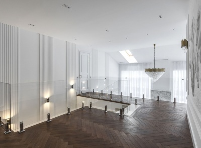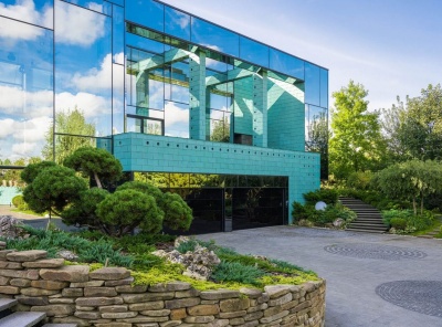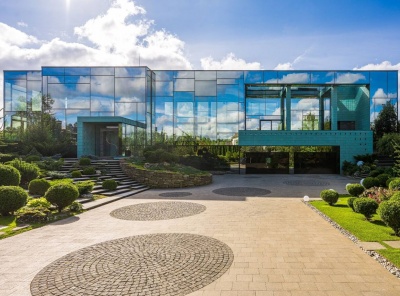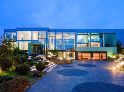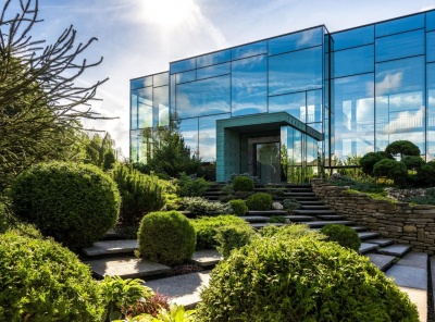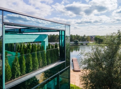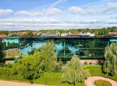 Продажа загородного дома площадью 1385 кв.м. Новорижское шоссе, 9 км от МКАД. Коттеджный поселок Никольская Слобода. Дом построен в 3 уровня. Выполненный по уникальному авторскому проекту, не имеет аналогов в мире. Уникальный стеклянный фасад, по большей части это огромные окна джамбо-формата Schuco со стеклянным эффектом, чтобы помещения не просматривались с улицы. Высота потолков от 3,5 до 7 метров. Открытые террасы с видом на озеро. Выполнен полностью черновой ремонт - разведены согласно проекту всё коммуникации.