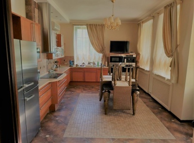 Продажа загородного дома площадью 515 кв.м. Новорижское шоссе, 14 км. Коттеджный поселок Павлово. Дом построен в 4 уровня из кирпича под ключ. Фасад отделан камнем. Выполнена отделка в классическом стиле. Установлены кондиционеры. Юольшая уютная гостинная с камином. Зеленый участок 21 сотка.Планировка:1 этаж - кухня-столовая-гостиная с камином, кабинет, гараж на 2 м/м2 этаж - 3 спальни, 2 с/у, Цоколь - постирочная, котельная,Мансарда - спальня, зона отдыха.