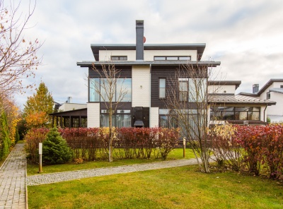 Продажа загородного дома площадью 530 кв.м. Коттеджный поселок Высокий Берег. Новорижское шоссе, 55 км от МКАД. Дом построен в 3 уровня по авторскому дизайн-проекту известного российского архитектора Ильи Хомякова. Внутреннее пространство оформлено в современном стиле. Зал и кухня укомплектованы итальянской мебелью марок Busnelli, Smania, Cattelan Italia, Reflex Angelo и др. Установлена кухня Minotti (Италия) и сантехника Villeroy & Boch (Германия). Все материалы привезены из Италии. Гостиная с панорамным камином. Великолепная SPA-зона с бассейном.