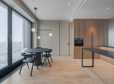 Продажа загородного таунхауса площадью 280 кв.м. Новорижское шоссе, 23 км от МКАД. Коттеджный поселок Парк Фонтэ. Таунхаус свободной планировки, нет несущих колонн, опорные конструкции расположены в стенах по периметру. Монолитная лестница прижата к стене и занимает минимум пространства. В панорамных фасадах отражаются облака, водная гладь и зелень, что создает единство интерьера и пейзажа. Участок 2 сотки.