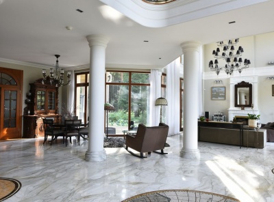 Продажа загородного особняка общей площадью 850кв.м. Коттеджный поселок Княжье Озеро. Новорижское шоссе, 21 км от МКАД. Дом построен в 2 уровня. Новый, стильный дом, с изыскано выдержанной архитектурой в английском стиле с обрамлением камнем. Современные внутренние интерьеры. В отделке использованы качественные, селекционные материалы. Поверхности стен и пола выполнены в стиле мрамора статуорио, гриджио, венецианской штукатурки, с эффектным нанесением перламутровой глазури и золота.