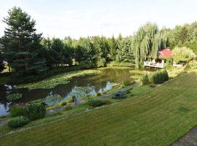 БАССЕЙН!! Продажа загородного дома общей площадью 980 кв.м. Новорижское шоссе, 18 км от МКАД. Коттеджный поселок Бенилюкс. Дом построен в 2 уровня под ключ с мебелью. Панорамное остекление, высокие потолки. На участке 1,3 Га (72 сотки собственность + аренда лесного участка 0.5 Га) выполнен качественный ландшафтный дизайн с озеленением и прудом, разведена система автополива. Так же распологается гостевой дом 150 кв.м. и дом для персонала 315 кв.м.