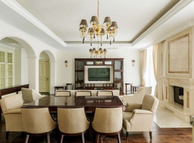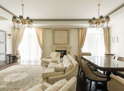 Продажа загородной квартиры общей площадью 144,3 кв.м. Новорижское шоссе, 25 км от МКАД. Коттеджный поселок Агаларов Эстейт. 3 комнатная квартира полностью меблирована и оборудована бытовой техникой. В стоимость входит 1 м/м, а также просторная кладовая. В доме есть тренажерный зал, бильярдная, сауна и комнатаотдыха.Планировкагостиная-столовая, спальня, спальня с с/у, кухня, прихожая, постирочная, с/у, терраса.