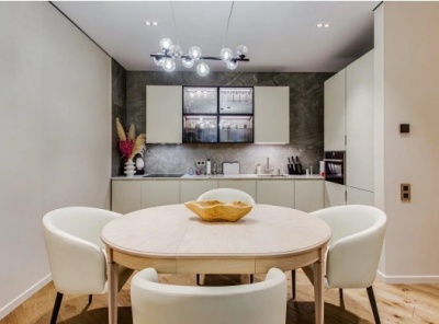 Продажа 3-комнатной квартиры площадью 94 кв.м. Метро Киевская, 7 минут на транспорте. Адрес: ул. Мосфильмовская д. 8. ЖК Дом на Мосфильмовской. В квартире выполнен дизайнерский ремонт в современном классическом стиле из экологически чистых материалов с элементами дерева. Квартира укомплектована базовой мебелью, техникой и сантехникой известных европейских брендов. Приточно-вытяжная система вентиляции. Планировка: кухня-гостиная, мастер-спальня с собственным с/у, гостевая спальня/кабинет, гостевой с/у гардеробная/постирочная.