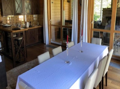 Аренда загородного дома площадью 300 кв.м. Коттедж построен в 3 уровня под ключ. Полностью готов к проживанию. Отделка в современном стиле. Дом интересен продуманной планировкой, просторным первым этажем, гостинной с панорамными окнами. Участок 16 соток с ландшафтным дизайном. На участке также находятся беседка с барбекю, баня (сауна на дровах, с/у, душ, кухня, комната отдыха), гараж на 2 м/м с блоком для персонала.