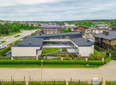 Бассейн! Продажа загородного дома в современном стиле общей площадью 600 кв.м. Новорижское шоссе, 19 км от МКАД. Коттеджный поселок Мэдисон Парк. Коттедж построен в 2 этажа. Без отделки. Панорамное остекление, терасса, высокие потолки, удачное расположение у озера и парковой зоны в тихом месте посёлка. Участок 15 соток озеленен и облагорожен, с ландшафтным дизайном.