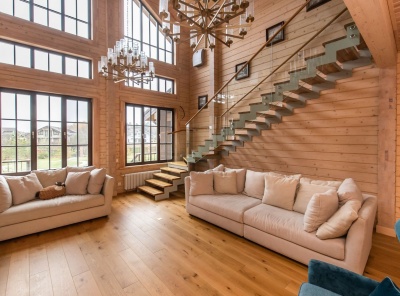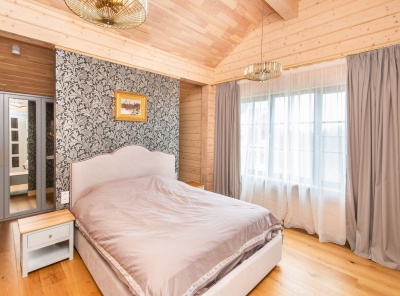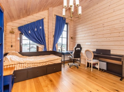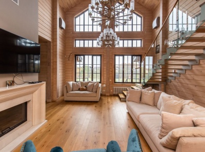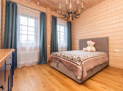 Продажа загородного дома площадью 540 кв.м. Новорижское шоссе, 65 км от МКАД. Коттеджный поселок Руза Фэмили Парк. Дом 350 кв.м. построен в 2 уровня из бруса. Кровля дома натуральная черепица Braas. Окна деревянные стеклопакеты (лиственница). В доме выполнена качественная отделка с использованием натуральных материалов: полы массив доски (дуб), керамическая плитка; лестница дуб; подоконники лиственница; камин мрамор; межкомнатные двери массив дерева; качественная фурнитура Mandelli (Италия); кухонная мебель на заказ из массива; сантехника от Villeroy & Boch.