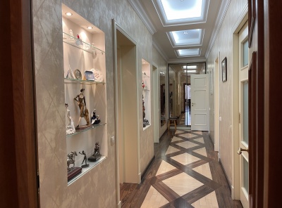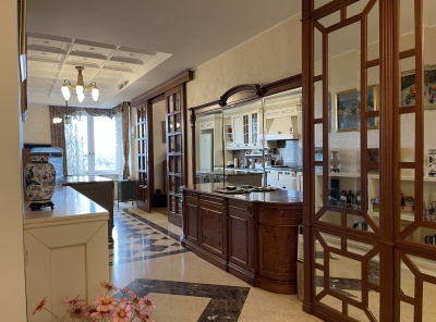 Продажа просторной 4-комнатной квартиры общей площадью 193 кв.м. Метро Ломоносовский проспект, 20 минут пешком. Улица Мосфильмовская, дом 70к6. ЖК Воробьевы Горы. Ремонт в классическом стиле. Квартира полностью меблирована и укомплектована всей необходимой бытовой техникой. Техника премиальных марок. Кондиционирование канальное - система Daikin. Кухонная столешница, подоконники, пол на кухне и в холле — натуральный мрамор. Кабинет отделан вишневым деревом из Италии. В гостиной, холле, кабинете антикварная мебель и люстры. Шикарные Виды на МГУ.