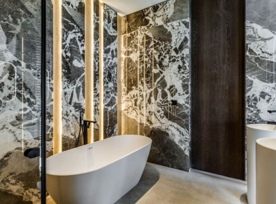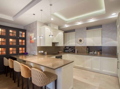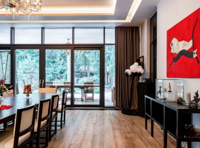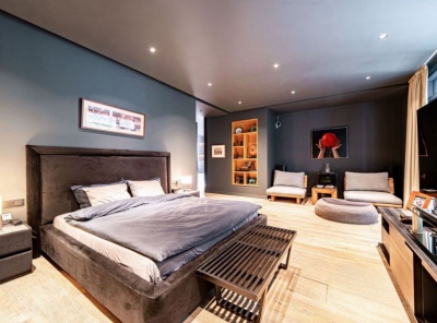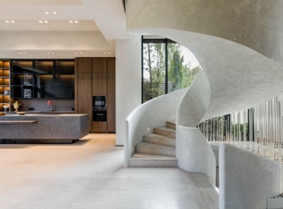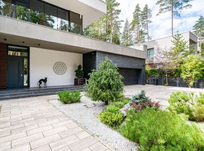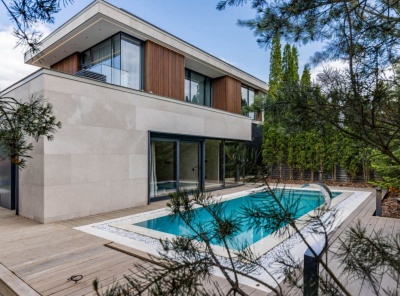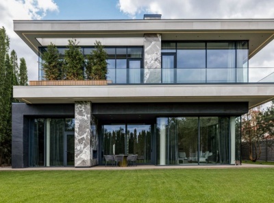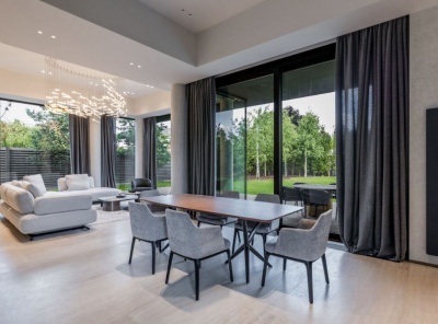 Продажа нового современного дома площадью 663 кв.м. Рублево-Успенское шоссе, 11 км. от МКАД. Коттеджный поселок Усово. Дом построен в 2 этажа, под ключ. Фасад из крупноформатного мраморизированного известняка, слэбы сланца с натуральным сколом, декоративное панно из натурального кварцита, термоясень. Концепция интерьера объединяет открытость и приватность, где пространства разных по назначению помещений перетекают из одного в другое.
