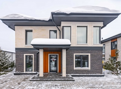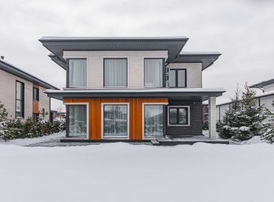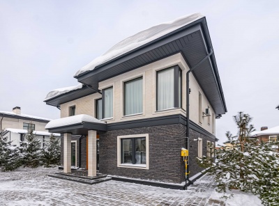 Продажа загородного дома площадью 250 кв.м. Новорижское шоссе, 23 км от МКАД, КП Новорижский. Дом построен в 2 этажа по авторскому проекту архитектурного бюро Артема Кузнецова, под строгим техническим надзором. Произведена геология грунтов — на основе него был сделан фундамент и конструктив всего дома (полная проектная документация). Фундамент и перекрытие — монолит. Фасад выполнен в дагестанском камне с элементами плитки ручной формовки TEGLA. Панорамные окна от компании REHAU серия - Intelio 80.