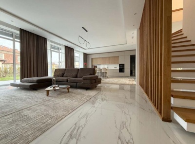 Прекрасная возможность приобрести загородный дом площадью 350 кв.м., расположенный на Новорижском шоссе, всего в 23 км от МКАД. Эта жемчужина архитектуры находится в коттеджном поселке Новорижский и воплощает стиль Хайтек с его изысканными линиями и современными формами. Двухэтажный дом выполнен из кирпича, а его интерьер, оформленный в духе современного минимализма, наполняет пространство легкостью и функциональностью.