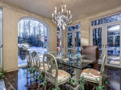 Продажа загородного дома общей площадью 1000 кв.м.(450 кв.м. основной и 550 кв.м. гостевой дом).  Дмитровское шоссе, 29 км от МКАД. Поселок Трудовая Северная. Дом построен в 4 этажа под ключ с мебелью. В основном доме выполнена отделка с натуральной древесиной, мрамором и антикварной мебелью 18-19 века. Кухня с бытовой техникой Kuppersbusch, Gagenau, Ilve. Гостевой дом с банным комплексом и бассейном. Участок 112 соток с вековыми деревьями в 200 метрах от Икшинского водохранилища.