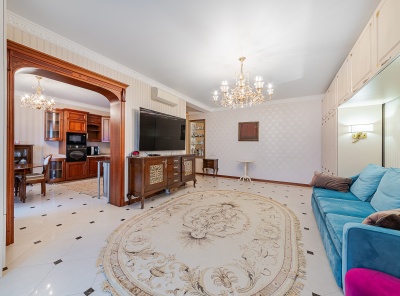 Аренда 3-комнатной квартиры площадью 130 кв.м. Метро Сокол, 12 минут пешком. Чапаевский переулок, дом 3. ЖК Триумф Палас. Впервые в аренду! Светлая, уютная, тихая квартира с новой отделкой в стиле современная классика, которая выполнена из высококачественных экологичных материалов. Полы - массив дуба. Мебель в комнатах - Италия. Очень много места для хранения вещей. На кухне гарнитур со встроенными шкафами, есть вся необходимая бытовая техника. Подогрев полов в с/у. Система кондиционирования Daikin. Вид в тихий двор.