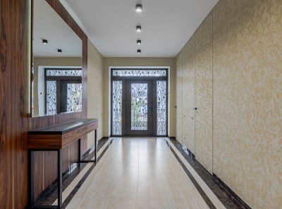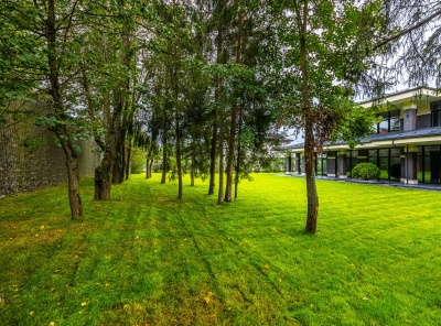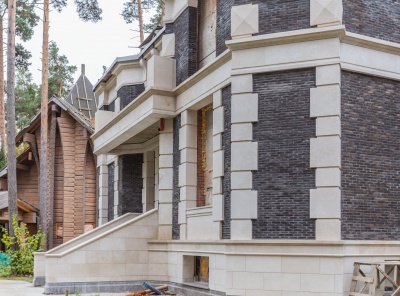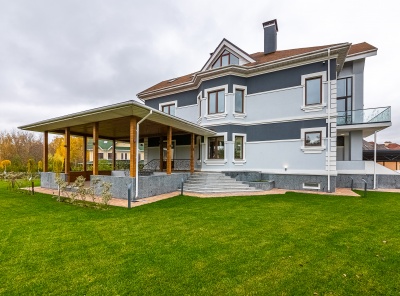 Продажа современного дома площадью 1100 кв.м. Рублево-Успенское шоссе, 24 км от МКАД. Коттеджный поселок Сосновый Бор. Дом построен в 3 уровня под финишную отделку в классическом стиле с панорамными окнами, фасады из натурального камня. В доме выполнены все инженерные работы, отопление, тёплые полы, вентиляция, электрика, полностью смонтирована и функционирует котельная, смонтированы два камина (один уличный). На участке площадью 43 сотки расположены отдельно стоящий гараж на 3-4 м/м с квартирой для персонала 180 кв.м.