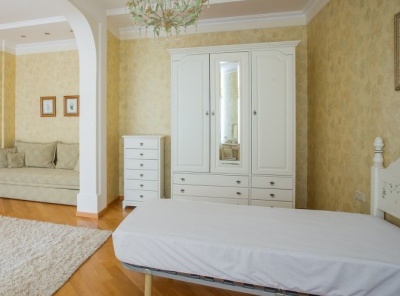 Аренда 3-комнатной квартиры площадью 120 кв.м. Метро Молодежная, 5 минут транспортом. Островной проезд, дом. 6. ЖК Остров Фантазий. Квартира полностью меблирована современной, эксклюзивной мебелью. Ремонт выполнен в классическом стиле, с элементами росписи по стенам, по дизайн проекту знаменитого архитектора Семёна Агроскина. В квартире имеется вся необходимая бытовая техника, в каждой комнате установлен кондиционер, имеется кедровая сауна. Окна выходят во двоp. есть балкон. Машиноместо в подземном паркинге в стоимости.