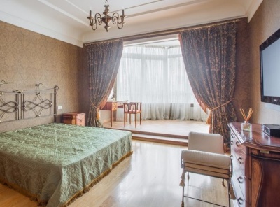 Аренда 5 комнатной квартиры площадью 245 кв. м. Метро Минская, 10 минут пешком. Улица Минская, дом 1Гк1. ЖК Золотые ключи 2. В квартире выполнен дизайнерский ремонт в классическом стиле из экологически чистых материалов. Квартира полностью меблирована и укомплектована всей необходимой бытовой техникой от ведущих мировых производителей. Панорамный вид на Поклонную гору и во двор. На подземном паркинге машиноместо входит в стоимость. Планировка: кухня-гостиная-столовая с выходом на балкон, 3 спальни, кабинет, 3 с/у., 3 гардеробные, постирочная.