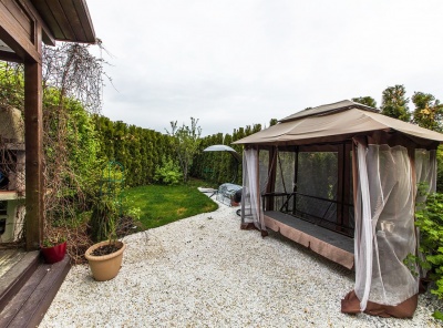 Продажа загородного таунхауса площадью 220 кв.м. Новорижское шоссе, 23 км от МКАД. Коттеджный поселок Покровский. Таунхаус построен из кирпича в 2 этажа. Дизайнерский ремонт. Стиль современный. Оборудован мебелью и всей современной бытовой техникой. Участок 3,3 сотки. Выход на участок с просторной беседкой и зоной барбекю на первом этаже из гостиной. Планировка:1 этаж — кухня-столовая, гостиная, гостевая спальня, гостевой с/у, гардеробная, сауна,2 этаж — мастер-спальня, с/у, вторая спальня, гостевая комната, гардеробная, с/у, выход на балкон.