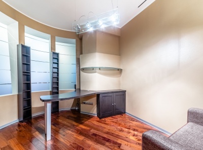 Аренда 3-комнатной квартиры площадью 143 кв.м. Метро Менделеевская, 3 минуты пешком. Весковский тупик, дом 3. ЖК Тверская Плаза. Выполнен дизайнерский ремонт в современном стиле. Квартира полностью меблирована и оснащена всей необходимой техникой. Окна выходят во двор. 2 лоджии. 1 машиноместо на подземном паркинге входит в стоимость.Планировка: кухня-гостиная-столовая с камином, 2 спальни с ванными комнатами и гардеробными, кабинет со светопроницаемой стеной.