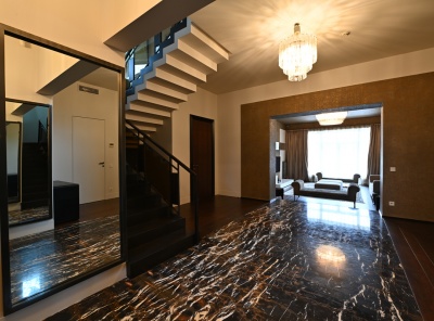 Продажа загородного дома общей площадью 550 кв.м. Новорижское шоссе, 19 км от МКАД. Коттеджный поселок Миллениум парк. Дом построен в 3 этажа в современном стиле. Выполнена дизайнерская отделка под ключ, много света, просторные комнаты. Грамотная планировка. Участок 10 соток. Планировка:1 этаж - прихожая с выходом на террасу, холл, с/у, гостиная-кухня-столовая с выходом в зимний сад, спальня, гараж на 2 м/м,2 этаж - холл, мастер-спальня с с/у и гардеробной, 3 спальни со своими с/у,3 этаж - СПА-зона с бассейном и выходом на террасу.