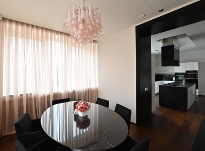 Аренда 4-комнатной квартиры площадью 180 кв.м. Метро Сокол, 12 минут пешком. Чапаевский переулок, дом 3. ЖК Триумф Палас. Светлая, уютная, тихая квартира с отделкой в классическом стиле, которая выполнена из высококачественных экологичных материалов. Полы - массив дуба, плитка - мрамор с подогревом. Антикварная мебель. Люстры - Италия, Венеция. Кухня оборудована техникой Miele, в том числе посудомоечной машиной, духовым шкафом. Система приточно-вытяжной вентиляции Daikin c раздельным климат контролем обеспечит идеальный климат в квартире.