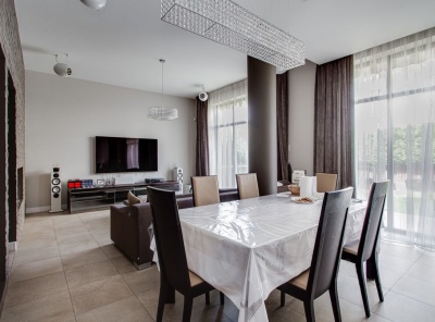 БАССЕЙН! Коттеджный поселок Миллениум Парк. Новорижское шоссе, 19 км от МКАД. Особняк площадью 1050 кв.м. построен по индивидуальному проекту в 2 этажа, под ключ. Полностью меблирован качественной итальянской мебелью. Установлена система приточно-вытяжной вентиляции. Участок 35 соток, в тихом месте поселка, высажены крупномеры, собственный выход в благоустроенный парк. До центрального озера 2 мин пешком. На участке расположен СПА комплекс с бассейном.