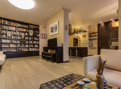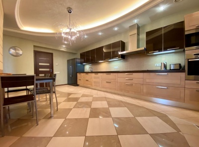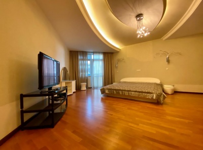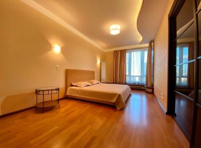 Аренда 5-комнатной квартиры площадью 187 кв.м. Метро Сокол, 12 минут пешком. Чапаевский переулок, дом 3. ЖК Триумф Палас. Светлая, уютная, тихая квартира с дизайнерской отделкой, которая выполнена из высококачественных экологичных материалов. Полы - массив дерева ценных пород. Мебель - Италия. На кухне гарнитур со встроенными шкафами, есть вся необходимая бытовая техника, большая холодильная камера LG. Квартира полностью меблированна дорогостоящей мебелью из натурального дерева. Везде где плитка - теплые полы.