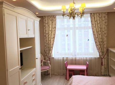 Аренда 4-комнатной квартиры площадью 180 кв.м. Метро Сокол, 12 минут пешком. Чапаевский переулок, дом 3. ЖК Триумф Палас. Светлая, уютная, просторная квартира с отделкой в классическом стиле, которая выполнена из высококачественных экологичных материалов. Полы - массив, бук. Кухня оборудована техникой Miele, в том числе посудомоечной машиной, духовым. Ковры, шторы и картины на потолках и стенах ручной работы. Теплые полы зонально - мрамор. Система приточно-вытяжной вентиляции Daikin c раздельным климат контролем обеспечит идеальный климат в квартире.