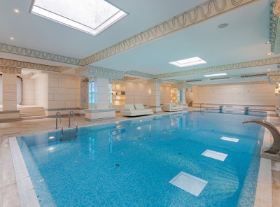 Отличное предложение в лесном поселке! Продажа загородного дома с бассейном площадью 800 кв.м. Особняк построен в английском стиле по индивидуальному проекту. Отделка выполнена в классическом стиле. Особняк расположен на большом лесном участке площадью 31 сотка. Тихая готовая часть поселка. Вековые сосны и ели, 100 роз, беседка с барбекю, патио, большой пруд с очисткой воды, декоративными рыбками и лилиями. Южная сторона, целый день солнце. На участке находится отдельно стоящий гостевой дом: 2 спальни, гостиная, кухня, с/у.