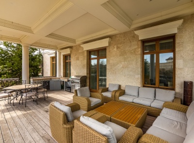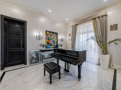 Продажа загородного дома площадью 1300 кв.м. Коттеджный поселок Резиденция Монолит. Новорижское шоссе, 23 км от МКАД. Дом построен в 3 уровня из кирпича. В отделке использовались качественные, натуральные материалы. Интерьеры выдержаны в классическом стиле. Дорогая мебель, техника. Уникальное планировочное решение. Участок с ландшафтным дизайном 40 соток. Расположен на первой линии от озера.