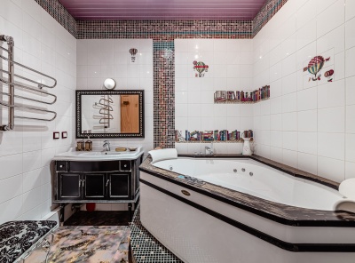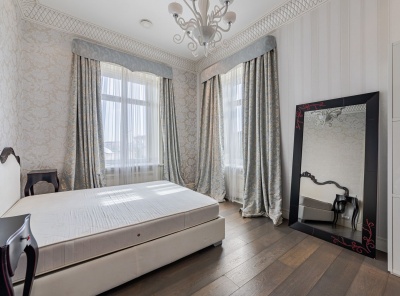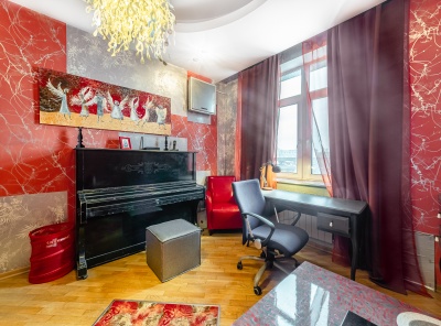 Аренда 3х-комнатной квартиры площадью 106 кв.м. Метро Сокол, 10 минут пешком. Чапаевский переулок, дом 3. ЖК Триумф Палас. Отделка выполнена в уникальном авторском стиле. Вся необходимая для комфорта мебель: большие кровати, вместительные шкафы, выполняющие функцию гардеробной, рабочая и столовая группы, кухонный гарнитур с расширенным набором техники, в том числе посудомоечной машиной. Собственная большая терраса. Оборудованы две ванные комнаты с джакузи и сауной. Установлена сплит-система.