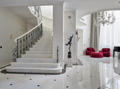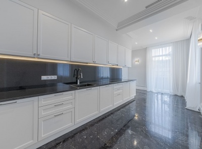 Продажа загородного дома общей площадью 900 кв.м. Новорижское шоссе, 18 км от МКАД. Коттеджный поселок Бенилюкс. Дом построен в 4 уровня. Под ключ. На участке 30 соток находится отдельно стоящий гараж на 1 м/м.Планировка:1 этаж - холл, гардеробная, каминный зал-столовая, кухня, столовая с выходом во двор, гардеробная, лифт, СПА-зона: бассейн, хамам, душевая, с/у, зона отдыха с камином и джакузи, и выходом во двор.