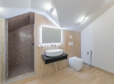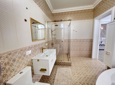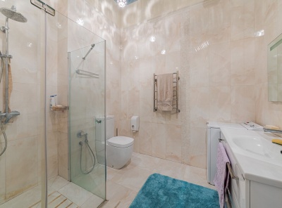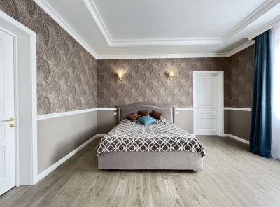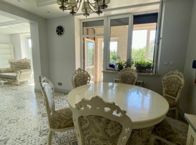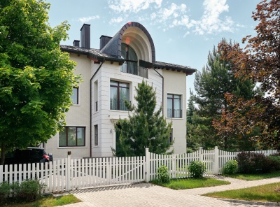 Продажа загородного коттеджа площадью 300 кв.м. Новорижское шоссе, 24 км от МКАД. Коттеджный поселок Русская Деревня. Дом построен в 2 этажа из газобетонных блоков BONOLIT + утепление минеральная вата ROCKWOOL 50 мм. Кровля- гибкая черепица KATEPAL (Финляндия), 3-й технический этаж утеплён и обшит плитами OSB. Установлены 3-камерные стеклопакеты. В гостиной- окна в пол и выход на террасу, место для камина. Все коммуникации- центральные (электричество, вода, канализация), заведены в дом. Газ- по границе участка.