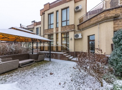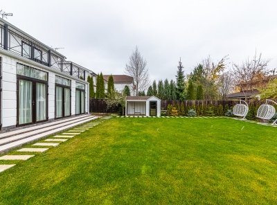 Аренда загородного дома общей площадью 800 кв.м. Новорижское шоссе, 14 км от МКАД. Коттеджный поселок Павлово. Дом построен в 4 этажа. Дом выполнен под ключ, полностью меблирован и готов к проживанию. На участке 21 сотка выполнен ландшафтный дизайн, сад с плодоносящими деревьями и кустарниками, веранда для барбекю. Отдельно стоящее здание бассейна связано с домом переходной галереей.