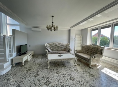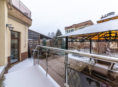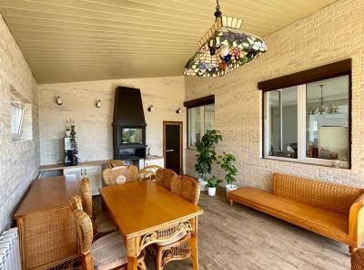 Аренда загородного дома площадью 380 кв.м. Новорижское шоссе, 23 км от МКАД. Коттеджный поселок Новорижский. Дом построен в 2 этажа из кирпича. Под ключ. Участок 11 соток. На участке расположен гостевой дом с 2 спальнями и кухней-гостиной. Теплый гараж на 2 м/м. Уютная терраса и беседка, 3 мангала, детская площадка.