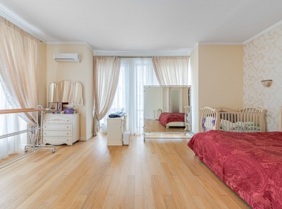 Продажа загородного дома общей площадью 363 кв.м. Новорижское шоссе, 39 км от МКАД. Коттеджный поселок Светлогорье. Дом построен в 3 уровня. Под ключ, из кирпича. Полностью меблирован и оснащен всех необходимой техникой. Участок 8,2 сотки. Планировка:1 этаж - прихожая, гостиная, кухня со столовой зоной и выходом на крытое патио, сауна с душевой, гостевая спальня с с/у, с/у, постирочная, гараж,2 этаж - мастер-спальня с с/у и гардеробной, 2 спальни, с/у,Мансарда - 2 комнаты свободного назначения, с/у, гардеробная.