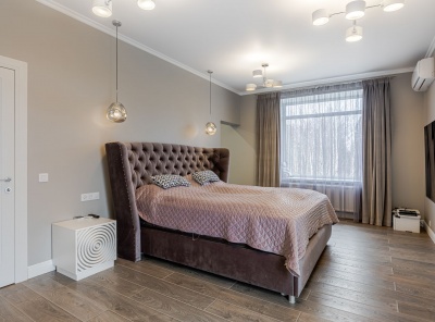 Продажа загородного дуплекса площадью 190 кв.м. Новорижское шоссе, 16 км от МКАД. Охраняемый поселок Веледниково. Дом построен из кирпича в 3 этажа в окружении многовековых деревьев. Современный дизайнерский ремонт, панорамные окна. Участок 6 соток и парковочным местом на 3 м/м находится на охраняемой территории с зарыбленным озером. Дом реконструирован в апреле 2021 года, 2009 года постройки с заменой всех инженерных систем и с использованием самых современных и модных строительных и отделочных материалов.