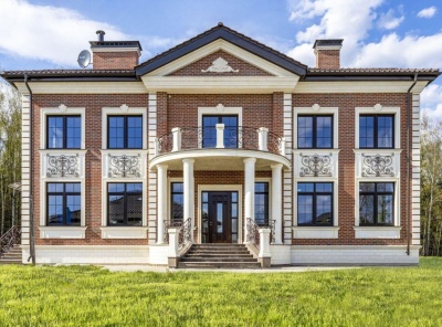 Продажа загородного дома площадью 380 кв.м. Коттедж построен в 2 этажа. Полностью готов к проживанию. Выполнена качественная отделка в классическом стиле. Установлена встроенная кухня с бытовой техникой. Просторный участок 16 соток с ландшафтным дизайном. Расположен в приватной части поселки. Планировка: 1 этаж - прихожая, холл, гостиная с камином, кухня - столовая, гостевой с/у, кабинет, котельная, гараж на 2 авто. 2 этаж - основная спальня с гардеробной и ванной комнатой, две спальни, каждая с ванной комнатой и балконом, холл с выходом на балкон.
