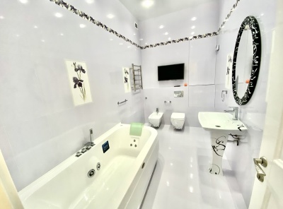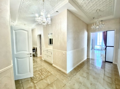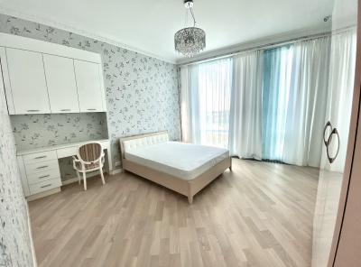 Продажа 3-комнатной квартиры площадью 119 кв.м. Метро Славянский бульвар, 7 минут на транспорте. Улица Нежинская, дом 1к3. ЖК Кутузовская Ривьера. В квартире выполнен свежий ремонт в светлых тонах. Окна выходят во двор, что обеспечивает спокойствие при проживании. Планировка: кухня-гостиная, две спальни с собственными гардеробными и ванными комнатами, постирочная, гостевой с/у.