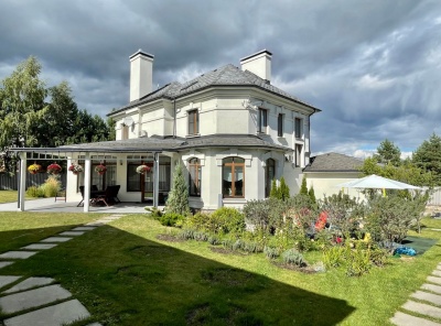 Продажа загородного дома общей площадью 456 кв.м. Новорижское шоссе, 35 км от МКАД. Коттеджный поселок Грин Хилл. Дом построен в 2 этажа. Оборудован системой видео наблюдения. Установлена система кондиционирования а также система глубокой очистки воды. На участке имеется дровяная баня с комнатой отдыха, душевой и кухней. Организована зона под барбекю. Участок 17,4 соток. Планировка:1 этаж - холл, гостиная-столовая с выходом на патио, кухня, кабинет, с/у, гардеробная, гараж на 2 м/м,2 этаж - мастер-спальня, гардеробная, 2 спальни, 2 с/у.
